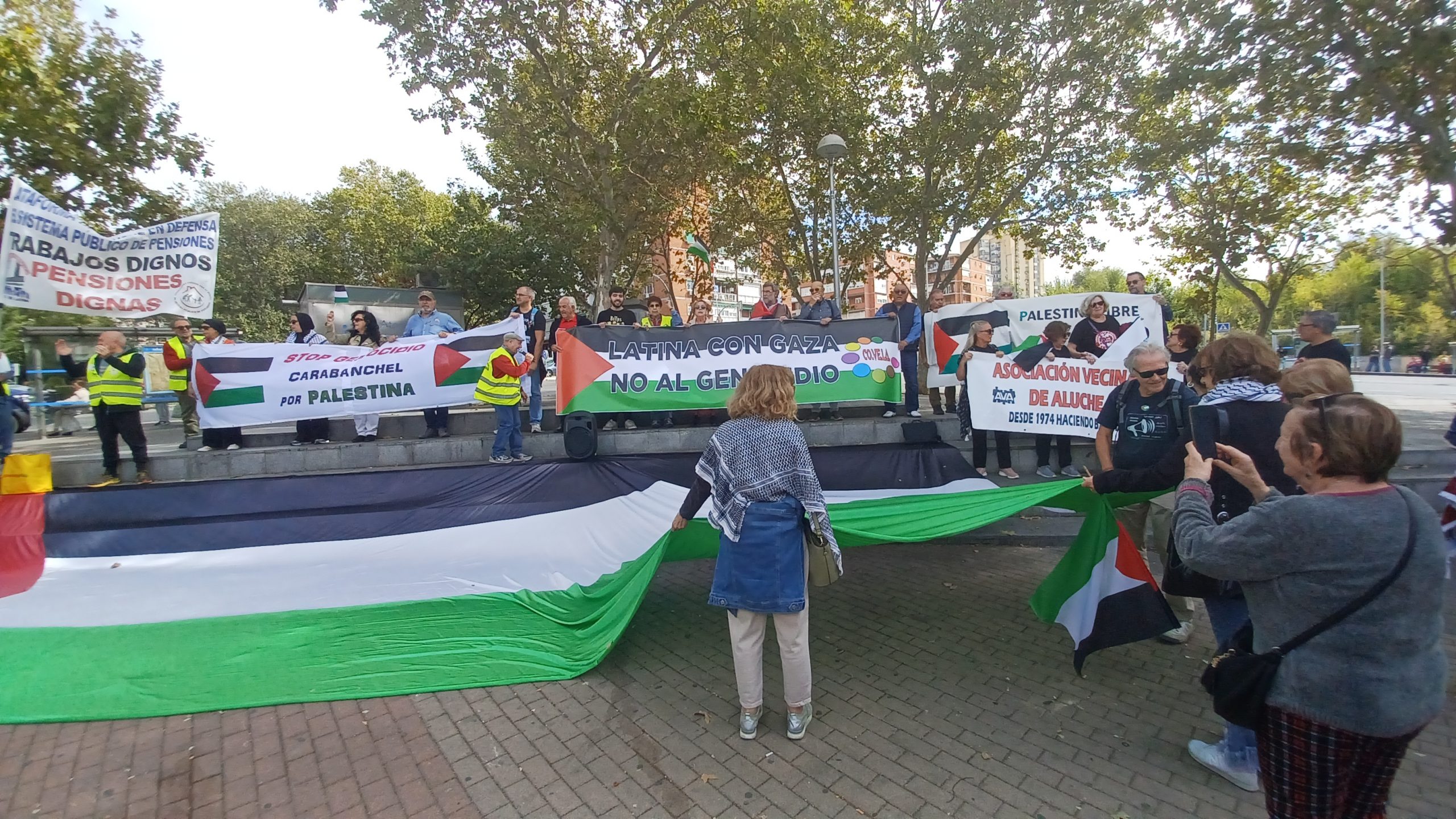 Desde la boca del metro de Lucero a la estación de Aluche, uniéndonos con las vecinas y vecinos de Carabanchel hemos dejado claro que no aceptamos la situación en Palestina.