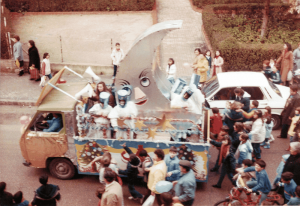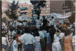 A2 - 139 Fiestas de Campamento. Junio 1985. Calle Galicia. Mural realizado por la A.V.C. Autora Juana Arrabal